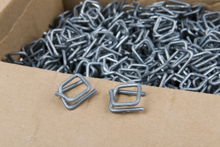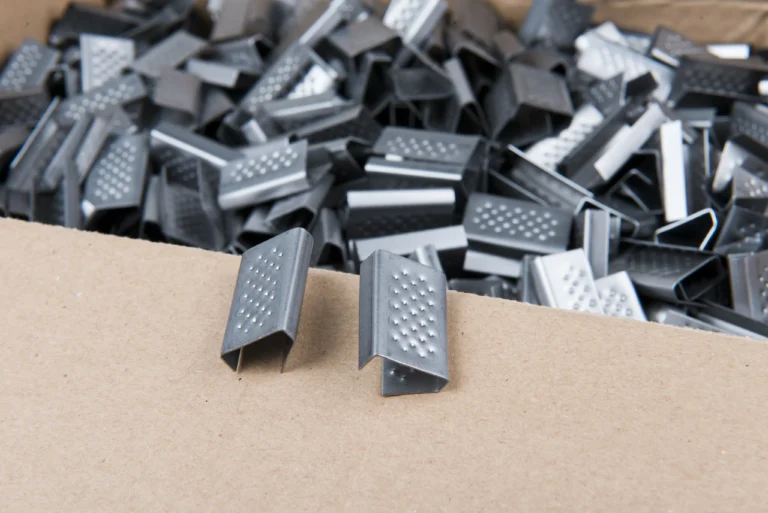 Opis produktu: Wytrzymałe zapinki metalowe przeznaczone do spinania taśm stalowych i polipropylenowych (PP/PET) przy zabezpieczaniu ładunków na paletach....